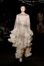 Other looks had an ethereal underwater feel, seen in rippling dresses with a classical allure, and luminous cape gowns in sheer silk organza, their liquid-coated pleats echoing the lines of the kinetic installation.