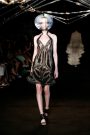 As a prelude, she handed the floor to like-minded Amsterdam-based artist duo Lonneke Gordijn and Ralph Nauta of Studio Drift to create a kinetic sculpture. Suspended above the runway — and based on the concept of a glass bird — the installation was composed of rows of glass bars suspended by invisible wires that made them move like wings. It made for some novel runway entertainment, but the show really took flight with van Herpen’s creations based on interpretations of a feather’s architecture.