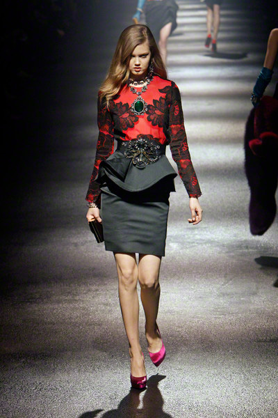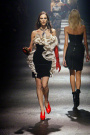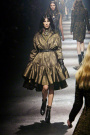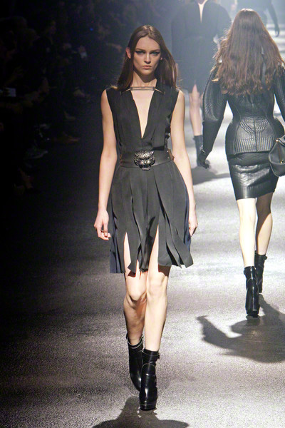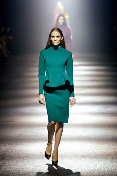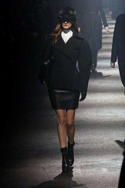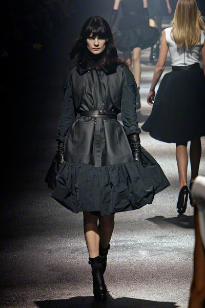 The show opened with hourglass mini-dresses in bright colors and sweet, round shapes, then black leather followed and black dresses and coats. The ruffles balanced it out and made sure the clothes didn’t look to aggressive or harsh. After the show Alber Elbaz told reporters that this collection was ‘all about freedom’.