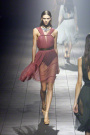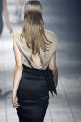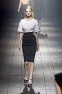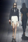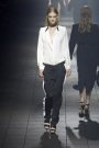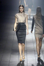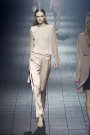 You need a genius designer like Alber Elbaz to transform the cut of a jogging suit into a powerful chic womenswear-collection. And so he did for Lanvin ss2012. On the runway appeared T-shirts, pencil skirts and loose shirtdresses,  stripped-down but powerful chic. Elbaz adopted the idea of comfy separates and sportiness for this collection. And how! Track pants ( with side stripes), were anything but casual with sexy slits. A white T-shirt had special, structured sleeves. And the stretch scuba material typical of athletic wear was transformed into tight skirts.