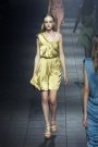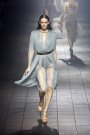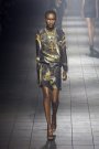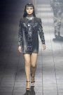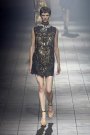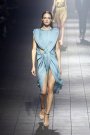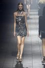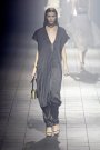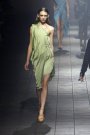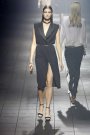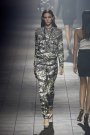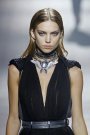 There was a definite Eighties vibe to this glamorous streetwear, not in the least because of the mega jewels — crystal crosses and gold chokers.  Some suits were done in green and black snake prints, which, in combination with the soft pleated dresses held with safety pins, reminded of  vintage Versace.