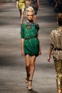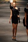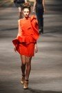 Alber Elbaz treated the audience yesterday with a a bombardment of emotional and visual pleasure. His ss2010 collection for Lanvin was an overload of color, glitter, and originality: dozens of girls marching, with a furious glamour, along a runway so long it seemed to stretch into infinity. The collection was breathtaking technical: drapey, pleated jumpsuits in polyester, candy-colors like pink, salmon, peach, and vermilion, extraordinary fine leather, a buildup of encrusted gold sequins and jewelry. There are no words to sum up the powerful, slow-building impact of the vision Elbaz created. The man-made fabrics (al synthetic), the spirals of ruffles, the soft puffy coats, the plissees and the layering. His navy and mushroom jumpsuits are a whole new take on eveningdressing and a farewell to the official tuxedo. It had all the ingredients and inspiration women need to feel happy, confident and beautiful.