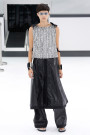 While maximalism was upcoming in so many fashion collections of the last few weeks, there was no sign of the more is more style rule at Hermes. It was as minimal as so many fashion houses have been showing over the last few years. Including the model’s barely there hair & make-up. Not necessarily a bad thing, of course. Without any distracting chandelier earring or neon colored troll hair our eyes were solely on the clothes. A selection of practical day wear in a vibrant color palette. Not mind blowing attire, but very wearable strong pieces. Like a white pleated midi skirt with matching long sleeve top with graphic lines. Or a red midi co-ord paired with sneakers in the same shade. Not to mention those white short combined with a sleeveless cream colored trench. Simple yet strong. Some outfits perhaps were a bit too crisp and clean and a little too much of what we’ve been seeing before the last couple of seasons. Not a collection to make headliners, but luckily Hermes’ Apple watch collection – to be released this week, yet not one pair at sight in the show – is already doing that. So not to worry. After all accessories are bringing in the big bucks at Hermes.