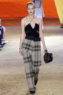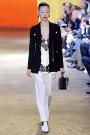 Leave it up to Carol Lim and Humberto Leon to create a collection filled with young, fresh, catchy designs that appeal to a wide audience. Their travel meets sporty looks had all the right ingredients for the summer wardrobe of a girl on the go. Graphic prints in bold shades of blue, yellow and red proved the designers still know their way around the color palette, making each look poppy and very Kenzo. They popped up on kimono style jackets, skater dresses, miniskirts, cropped tanks, maxi dresses and co-ords. Adding to the collection’s overall happy mood. Mesh body suits added some sexiness to the active attires.The XL gladiator sandals may have been a little too gimmick-y. Yet statement fanny packs, colorful handbags and chandelier earrings (although a slight style difference) made up for that slight misstep in the accessory department.