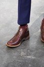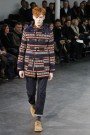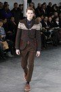 For next fall Junya Watanabe showed us a different take on the Fair Isle knits, which were a big hit this winter. Instead of showing the print on cardigans and sweaters Watanabe used it on suit jackets and coats in the most colorful examples. They looked comfy and warm and formed a good combination with the ankle hem of the (pretty basic-looking) pants. As they ambled around some park benches, placed in the middle of the stage, Watanabe’s mustached models really worked the new look.