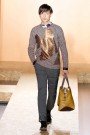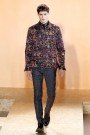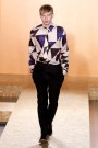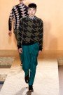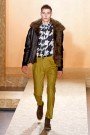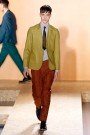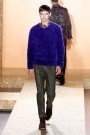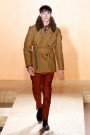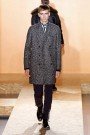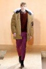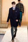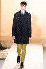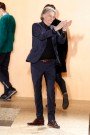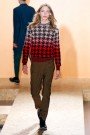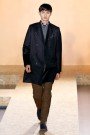 Who says fall collections have to be all about brown, grey and black? Paul Smith proved even prints and bright colors fit perfectly for an autumn collection. He showed suits in shades of mustard, red, flamingo pink and turquoise. Pairing a red pair of pants with a mustard jacket and combining different shades of blue in one office look. He introduced multiple colored houndstooth sweaters, a single Mondrian inspired creation and psychedelic prints popped up on a shirt and a winter coat. Models looked both confident and comfortable in the perfectly cut menswear designs. Sir Paul Smith’s ever growing Asian fan base won’t be disappointed and neither are we.