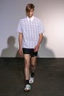 Raf Simons took elements of masculine and feminine dressing and mixed those into a sporty, tailored collection. Delicate floral prints, pleats, broderie anglaise and shades of pink were applied to modern, angular silhouettes. The models – with long, wet bangs – wore shorts with slits, boxy white shirts or overcoats with backs in floral prints and pleated skirts. Simons also presented long pants worn with colorful sneakers. Some T-shirts had illustrations of women.