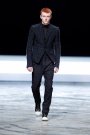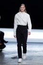 No darkness and monk-like dressing at Rick Owens for fall 2012. His collection looked quite sharp, also chic and masculine. The signature look was a slim, dropcrotch pant in black with a white shirt or turtleneck. Of course there was some leather too, like his signature black jacket, but that even had a sartorial cut.