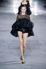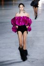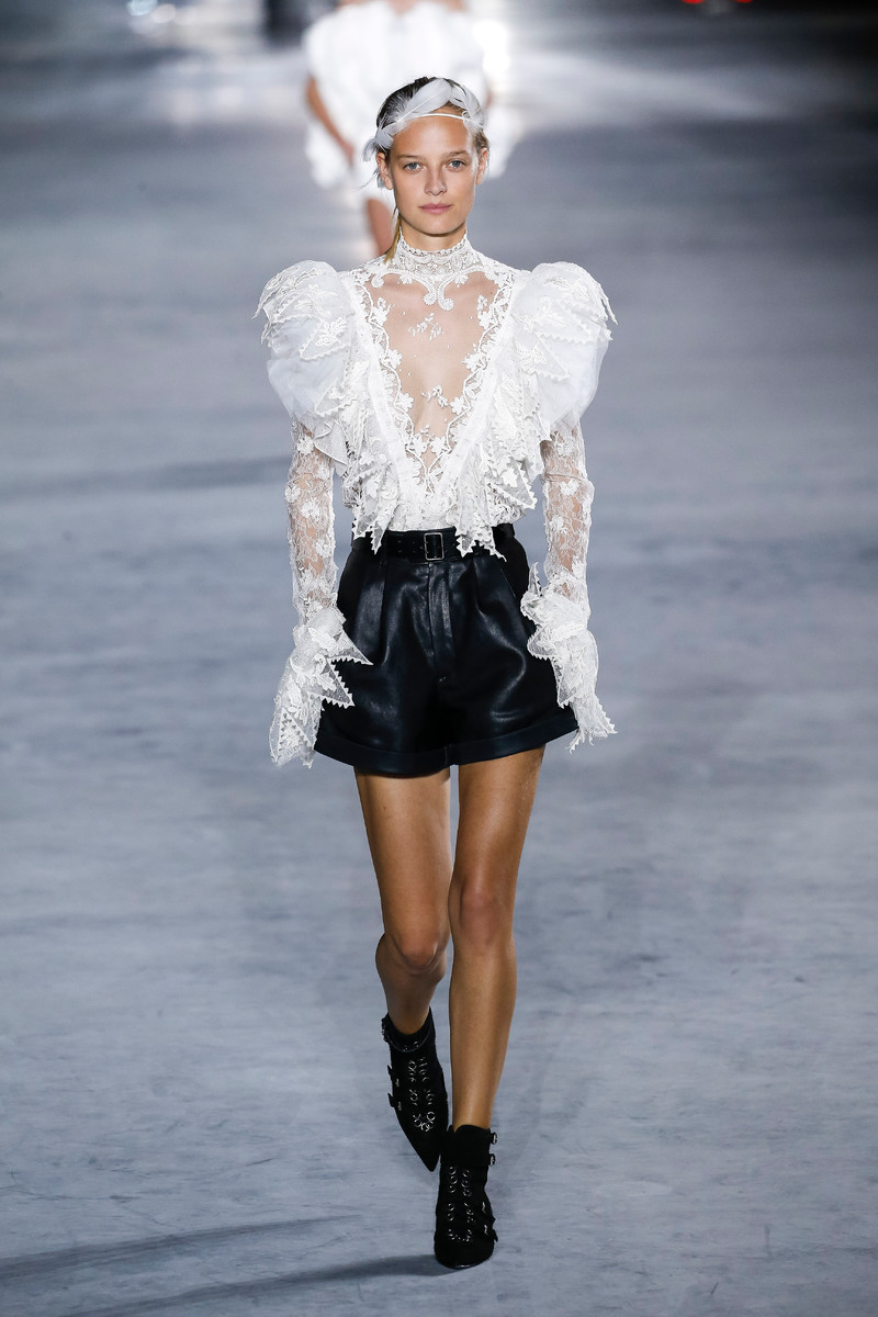 And as mesmerizing as that backdrop was as vibrant and glorious was Anthony Vaccarello’s collection. It included influences of the work of the young Yves Saint Laurent as well as the sexiness and boldness of what Saint Laurent stood for the last couple of years. Leather shorts and low cut, embroidered statement making blouses paired with boots and chunky earrings had written the words it-girl uniform all over them. Beautifully crafted white lace tops and blouses put everything on display yet still managed to look sophisticated and highly desirable paired with black leather shorts. A series of architectonic ballerina inspired party numbers formed the ultimate finale of a sexy, strong, sophisticated SS2018 collection.