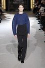 Stella McCartney brought a strong, restraint, homme/femme collection to the audience. She not only played with sexes, she also played with surface and contrasting volumes. The show began with rippled organza cocoon tops in black and blue tucked into pencil skirts or trousers their full sleeves and voluminous shapes in contrast to the slim tailoring below the waist.