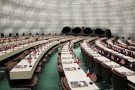 So the set of of his first menswearshow in Paris was not surprising, but still overwhelming. The location was a large conference room at the official headquarters of the French Communist Party in Paris, designed by Oscar Niemeyer. The audience had to sit behinds the desks where party-members used to sit an debate about the cold war. As an American in Paris, the choice for the venue was – well – daring. Also because Browne kept pointing at historical ‘fights’ between the USA and USSR. For example the army of astronauts which opened the show by marching into the room. The models were hidden in the space-suits, and they all stepped out  at the same time dressed identically.