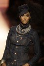 Jeans are one of the few things in fashion that never go out of style. On the contrary other denim outfits seem to come and go every few years. For the coming season several brands carefully introduced a few denim designs. We saw denim blouses, skirts and dungarees. At Jean Paul Gaultier streetwise models wore darkblue denim overalls. The designs were immediately recognizable as JPG’s because of the cone-bra details he added. Dolce & Gabbana used denim in both their collections. At the D&G western inspired show denim was mixed with white, beige or brown in almost every look. Pieces of lace or leather were stitched at the designs. For her first collection for Twenty8Twelve Sienna Miller also created some denim blouses and tough-looking sleeveless denim motorjackets with frayed ends. Hannah MacGibbon designed exactly one denim look for Chloé. It didn’t match any of the other outfits from the show, but she came up with it at the right time. (Tess van Daelen)