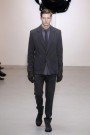It seemed the Viktor & Rolf Monsieur winter collection 2011 was sampled as if it was a normal dayroutine starting with  a man in his homewear, a gray combination of a sweater and a slim jersey sportspants/longjohn, followed by a man in white undies and a shirt and ending by a man dressed in a bomber-jacket covering his smoking. In between the designers presented everything a men’s wardrobe should contain during the day and eveninghours: a comfy cardigan, a lammy jacket, a trenchcoat, a good knit and a few nice looking suits in black, gray or even red. Having those basics a man can vary as much as he can. He can even wear his longjohn with a dressy jacket or let his shirt peep out.  It gave the rather serious and formal looking clothes a more informal character.