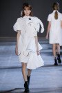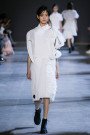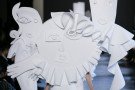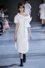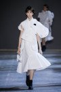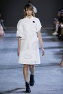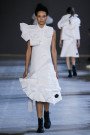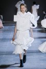 Leave it up to Viktor & Rolf to blow our minds with a collection of wearable art (turning into almost unwearable art). Starting off with a perfect cute little white polo dress inspired by Cubist portraits the couture pieces got bigger and bolder with every single look. Slowly yet steadily turning that girl in the little white dress paired with the latest black shaded Dr. Martens 1460 Ajax Boots into a girl sporting a larger than life white totem. Eyes, noses and lips everywhere, in the mix with V&R’s signature sculptural XL ruffles and bows made out of a white technical piqué. Walking couture sculptures, letting Viktor and Rolf focus on what they’re best at and what they love the most; designing pure pieces of art. Creations not necessarily meant to be worn (although we’d love to see a totem look on some runway any time soon, what do you say front row guest Iggy Azalea..?) or make money with (V&R fragrances cover most of that part), but crafted couture to entertain and inspire. This was undoubtedly the most original take on the crispy white polo shirt we’ve ever laid our eyes on and we won’t soon forget.