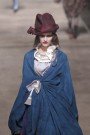 Fairy tales like Hansel and Gretel, the Sleeping Beauty and Jack and the Beansteak were Westwood’s inspiration for her Prince Charming (fall) collection. Her models wore large colorful crowns, hats and cloaks. Their lips were bright red, their eyes were dark and some models had small mustaches painted on their faces. Very fairy tale-like indeed.