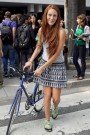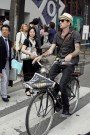 Due to the beautiful after summer-weather in Milan (and maybe the financial crisis) a lot of people choose the bike as their favorite tool to move from one fashionshow to the other. Dressed from head to toe in designerwear, with high heels, a short dress – there are no limits.