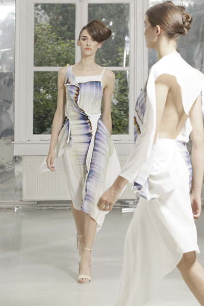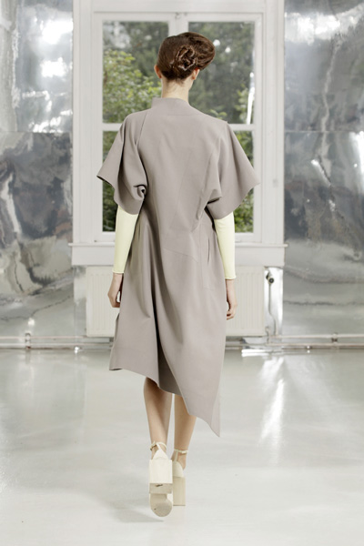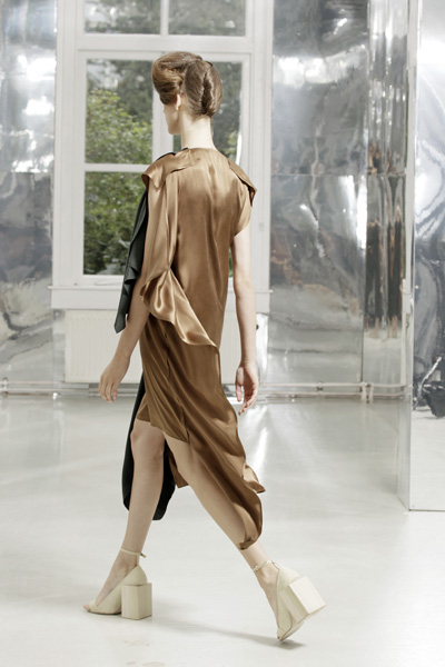 After thirteen years the Dutch fashionduo Niels Klavers and Astrid van Engelen close their fashionhouse. Due to the economic situation it’s impossible for them to continue as an independent fashionlabel. It’s really sad that such talented and original designers like Klavers van Engelen have to quit the fashionstage. Two designers whose hearts are totally dedicated to fashion and craftsmanschip. The Netherlands is not an easy market to survive as a fashionlabel, and Klavers van Engelen really tried to land in other countries. Without any satisfying results. It seemed only people who are connoisseurs were interested in their designs, people who can enjoy the way Niels Klavers and Astrid van Engelen play with fabric, construction and movement. With every collection it seemed they let the fabric and movement do the job in dresses, tunics and pants that moved like water.