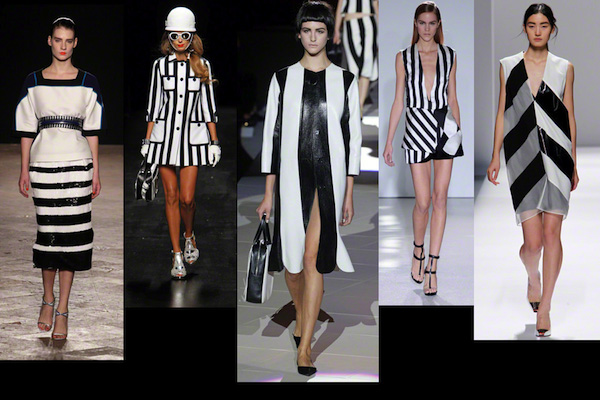 Stripes are going to make it BIG! This parade of bold striped dresses breath crisp retro reminiscence yet the designers stated their inspiration was found in more obscure places.