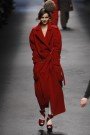 Emanuel Ungaro showed some bright colors (green, red and pink) for fall. Those colors were used for the fancy cocktail dresses, the jackets, blazers and pants. On many outfits a colored waistband was added as well. We, for instance, saw a gold/yellow pair of pants combined with an animal printed coat and a red waistband.