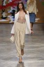 A few seasons ago some slim fit pants were indispensable. For next summer a pair of wide-legged beige pants, a straightforward skirt, a loose-fitting jacket and a long cardigan are the season’s must haves. We saw many of these items at Stella McCartney’s show.