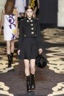 The Versace-show gave a slightly baroque feeling due to the enlarged motifs at dresses. Lots of white, black and dark-blue, and a little red and green. Donatella Versace kicked things off with military precision — a black admiral’s coat with bold, gold buttons that was as chic as it was streamlined. Then came the LBDs, sharp and angular in silhouette, and more jackets and coats in the season’s soldierly vibe. To both, the designer added a pretty baroque motif of large-scale swirling floral scrolls in bright purples and yellows.