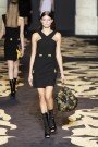 The designers played their signatures with rich, highly engineered fabrics. The kaleidoscopic results looked unmistakably theirs. The slouchy cut of their pants, the undone way the back hem of a black suede camp shirt was shown untucked over a slim pencil skirt, or how a party dress with an asymmetric neckline was layered over a black tee. The fabric innovation made things look quite new. Two great patent shearlings, pressed flat and cut with clean, sharp lines, required a double take. Chunky, viscose and leather knits worked a cozy street effect. What was most impressive about this collection was that Hernandez and McCollough’s took traditionally homespun themes and made them look sophisticated and even edgy. When did crafted clothes looked so cool?