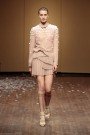 Like more designers this season Wang chose to work with parachute silk. He showed some printed versions (on which unfinished crossword puzzles could be seen) and combined it with sheer fabrics. Apart from the white he introduced some funky mint green and a couple of terracotta-shaded designs.