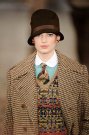 Done is earthy tones like army green, beige, camel and brown the traditionally tailored designs made up for some wearable looks topped off by tweed hats and knee high riding boots.