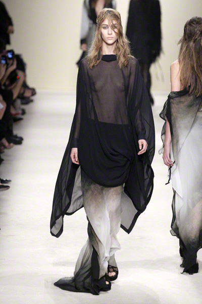 Although the couture spirit doesn’t leave much room for layers, there are designers who don’t want a stiff, minimal look but search for more fluidity, layering and movement in their clothes. Luckily. Not every woman is waiting for Balenciaga-esque silhouettes. So thanks to Haider Ackermann and Ann Demeulemeester there are still exciting layers, color-combinations and silhouettes. But even a modernist as Raf Simons plays with see through layers in his collection for Jil Sander.