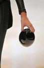 One special handbag at the Alexander McQueen fashion show resembled a bowling ball. The model had to put her fingers in it to carry it.