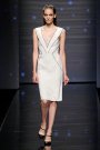 Dressed in a series of delicate, short and sheer cocktail dresses the models showed lots of skin and still looked sophisticated. Peplums of light tulle and beaded Fringes kept it playful even though we’re sure Ferretti could come up with tons of extra light-colored cocktail dresses if she had to.