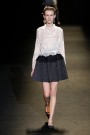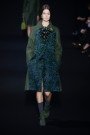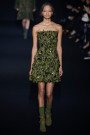 It was clear that Alberta Ferretti got her inspiration from the woods and birds. The result was far from magcical and arty, it got a depth and sobriety via heavy textures and embellishments. Feathers were a key component of the collection — as a print; as an illusory mélange of pleated ribbon; and as a real detail.