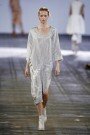 Like more designers this season Wang chose to work with parachute silk. He showed some printed versions (on which unfinished crossword puzzles could be seen) and combined it with sheer fabrics. Apart from the white he introduced some funky mint green and a couple of terracotta-shaded designs.