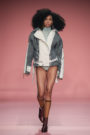 They wore grungy over-accessorized looks with lots of black leather. Corset-like tops, baseball jackets and large hoodies were all in the asymmetrical, layered streetwear mix.