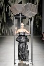 Marga Weimans’ models came down the runway tonight in almost impossible shoes (designed by Dutch shoe designer Jan Jansen) and larger than life printed dresses (items like the park dress and the skyscraper dress which form the skyline of Marga’s collection) while holding on to black frames on wheels. The show was a true spectacle of structured architectural looks in every possible shape and size. The dresses were all black and white printed shoes were made out of wood with holes in them. The show was closed by a ‘telephone dress’; a sheer black design with actual ringing cellphones in it. A great show to start the Amsterdam Fashion Week with and a nice introduction to Marga Weimans’ designs, who experienced her Amsterdam Fashion Week debut today.