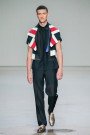 “There will be a surprising guest-model walking down the runway tonight”, Dutch tv-host and male model Dirk Taat revealed a few minutes before show time. That already started many rumours about the opening show of Mercedes-Benz Fashion Week Amsterdam. And it was up to artist and designer Aziz Bekkaoui, who has his roots in Morocco, to warm up the fashion audience. And it seemed to be the follow-up of his last season show. While his fall collection was all about love, named United Hearts Now, this time it was about United Origins. His aim was to redefine everyday lines, squares, colours and symbols that have been around us for ages, surrounding us in the streets and in the media. Sometimes it’s good to look at regular things from a different angle, change your perception and see it in a new and refreshing daylight, considering them more than just a colour or solid constitution. The result was a clean graphic pallet of black, white, red and blue held together by golden cement. In some outfits a bold orange caught our eye, in others the British flag peeped out, perhaps the epitome of his message. Some outfits looked modernly clean, others were richer, more accessorised or slightly preppy. Oh and not to mention those white sneakers. Any guy who wouldn’t want to wear those crispy whites during summer time? We kept on flipping the pages in our ‘How to Stay Cool During the Summer’ guide, which was underlined by Amy Winehouse’s Back to Black and an upbeat Dutch hip hop finale song, which was a direct link to that mysterious guest on the runway, Dutch rapper Yes-R. One thing’s for sure; Aziz gives you a one way ticket to a cool urban attitude.