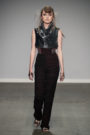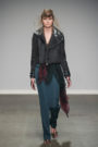 They wore grungy over-accessorized looks with lots of black leather. Corset-like tops, baseball jackets and large hoodies were all in the asymmetrical, layered streetwear mix.