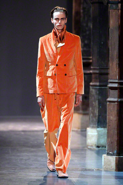 This time Ann Demeulemeester – the Belgian queen of black – wanrted to prove she can use color too in her collections. Her show opened with deep-wine purples and ended with orange and sea blue.