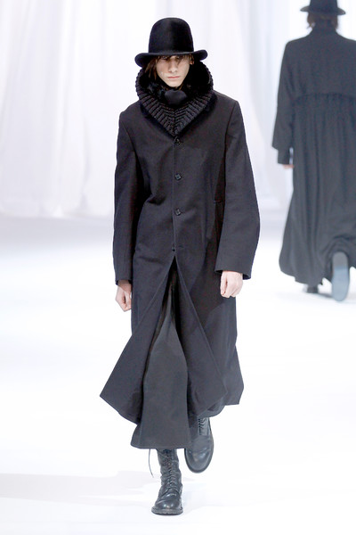 Ann Demeulemeester had an extra feminine touch this week. Besides long tops and dramatic floor length coats models wore bowler hats with netting and seemed to wear make-up. Done is her regular color palette of blacks and whites her full length sweaters, embroidered jackets and pants tucked into lace up boots almost felt like a series of Amish Ann-designs. They didn’t appear like the most fun people to hang out with, yet dressed in such great layered pieces the mysterious models looked interesting enough to evoke a conversation.