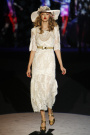 Towards the end of the show the collection became more luxurious showing more embellishments and layering, all matched with Sui’s wonderful leg wear. Several hippie looks in white lace formed a nice contradiction with some of the black rock and roll dresses.