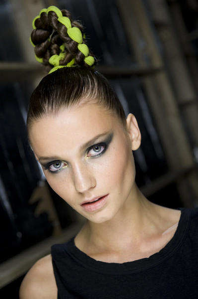 The combinations of many bright colors looked great on each of the models. So for next summer I think we can spice up our make up and try to create the same pastel-colored eye shadow look for ourselves. If you dare, use green and purple; they seem to be the main colors for 2010.