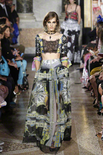 The how-to-wear part is actually quite easy. Mix your cropped top with long pants (Roberto Cavalli), shorts (D&G), pencil skirts (Prada) or maxi skirts (Emilio Pucci); everything is possible.