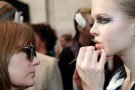 Backstage models were dressed in beautiful clothes for the Tony Cohen fashion show. Make-up looked elegant but also tough and punky and matched perfectly with the jewel-tones of the dresses.