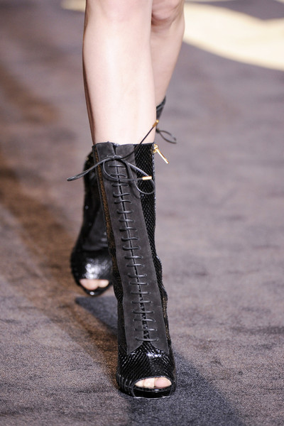 Probably one of the most remarkable trends in fashion this year was the dominatrix trend. We saw shiny leather pieces, hand cuff bags, corsages, transparent fabrics and… lots of ultra high lace- up boots. Remember Kate Moss closing down the Louis Vuitton show walking in those stunning boots? And she was not the only one.