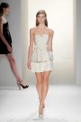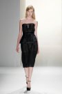 Francisco Costa closed New York fashion week with a collection that had a strong sexual vibe. He opened with a black satin conical bustier dress, the model’s belle poitrine outlined in silver. All signs pointed to the bust as this collection’s erogenous zone. But Costa didn’t ignore the waist or the legs, either. Peplums played a starring role, and narrow belts accented most of the looks.