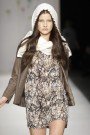 Other eye-catching details were puffy sleeves and accentuated shoulders. The designs had floral prints, stripes and bows. And the girls all walked on boots with wedge heels.
