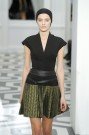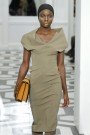 Victoria’s fall collection started off with some brights (pink, yellow, orange) and then changed to grey, army green and black. The silhouette of the designs was a bit looser than we’re used to from LaBeckham, yet felt feminine as ever. The collection appeared quite minimalistic too, since most designs were solely decorated by large zippers (on the back).