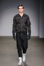Wearable, modern and tough; just three of the ingredients out of the impressive Army of Me catwalk show. The male models were all zipped and tied up in the perfectly tailored pieces. Wearable menswear items, yet never anything to obvious or familiar. All done in black with a touch of orange (which is the new black). Boxy neoprene sweaters, nylon bombers, supple leather jackets, longer length woolen sweaters, baggy pants as well as skinny trousers. Statement pieces any cool kid would want to strutt around in. Leather gloves, laced up boots and innovative bags to go.