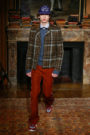 Outerwear had an artistic bent, as in a big black cape that looked as if it had been molded from paper mache while a black leather jacket that was inset, Matisse-like, with triangular bits of blue. The plaid on a duffle coat went every which way, as if the pattern had been shattered — and later reassembled. Knits were interesting, too, with many of them truncated at the waist to reveal more plaid shirts. Trousers veered between the slim and the oversized, with chinos pre-wrinkled with big cuffs.