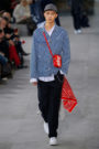 Cobranded goods — ranging from a bright red fanny pack to a denim jacquard baseball shirt — peppered the collection, which Kim Jones, men’s artistic director at Vuitton, said was inspired by New York art stars of the early Eighties such as Jean-Michel Basquiat, Julian Schnabel, Keith Haring and Andy Warhol.